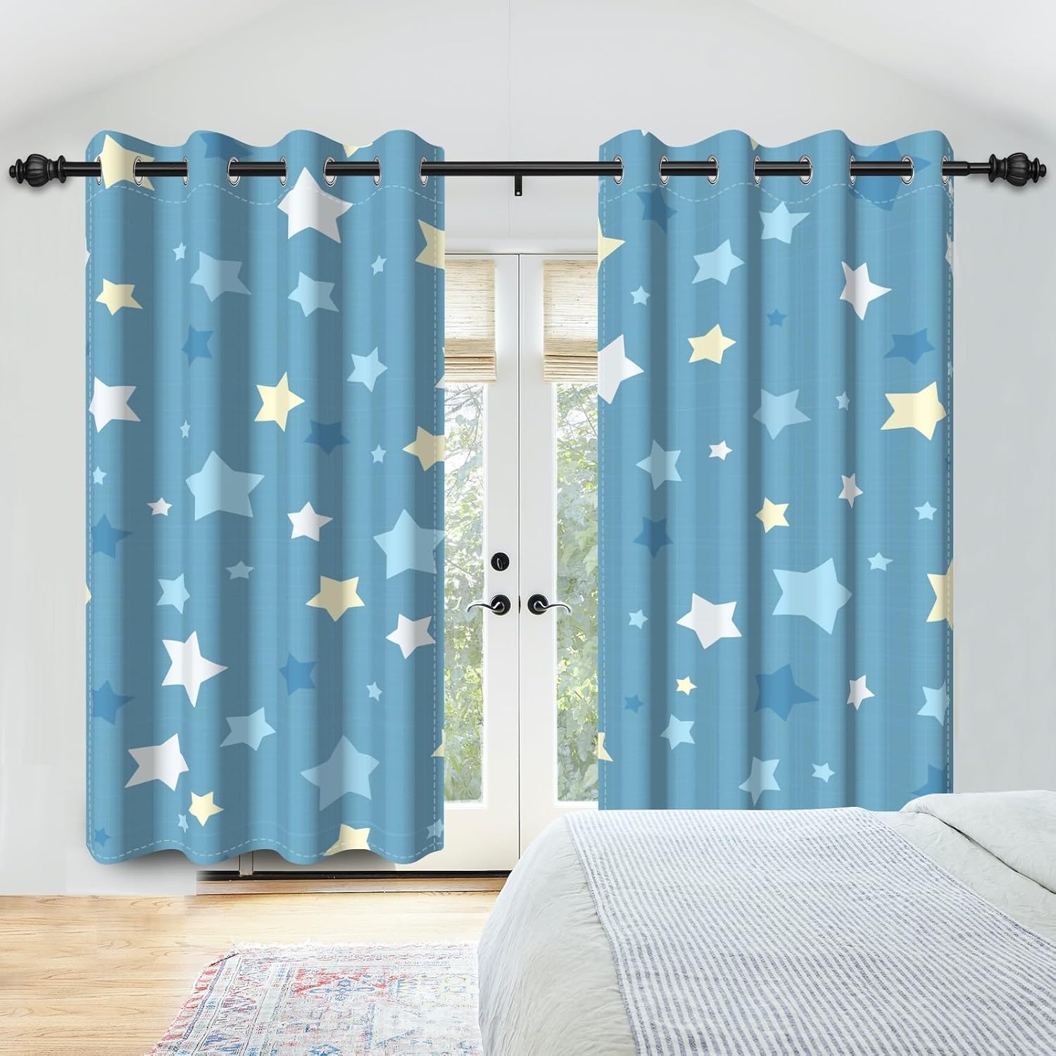 FeaturesThe exclusive curtain panels are designed to add fashion and style to most space, with drape feeling, are soft, long-lasting and elastic. Perfect for blocking the sun, preventing UV ray, creating more privacy, or setting the mood in your indoor or outdoor living space.Specifications:We can provide other sizes: 42x63inch, 42x84inch, 42x96inch, 42x108inch, 52x45inch, 52x63inch, 52x72inch, 52x84inch, 52x96inch, 21x63inch, 26x63inch, 46x54inch, 21x45inch, etc.Material: polyesterColor: as shown in the picturePackage includes:2 x blackout curtain panelsNotes:1.Slight differences in color due to the display and the light are normal.2.Please iron the back side(not the image side) with a low temperature before first using. (To avoid possible steam damage, place a dry towel between the curtain and the iron.)3.Easy snagging, please don't use sharp objects to scratch the curtain.