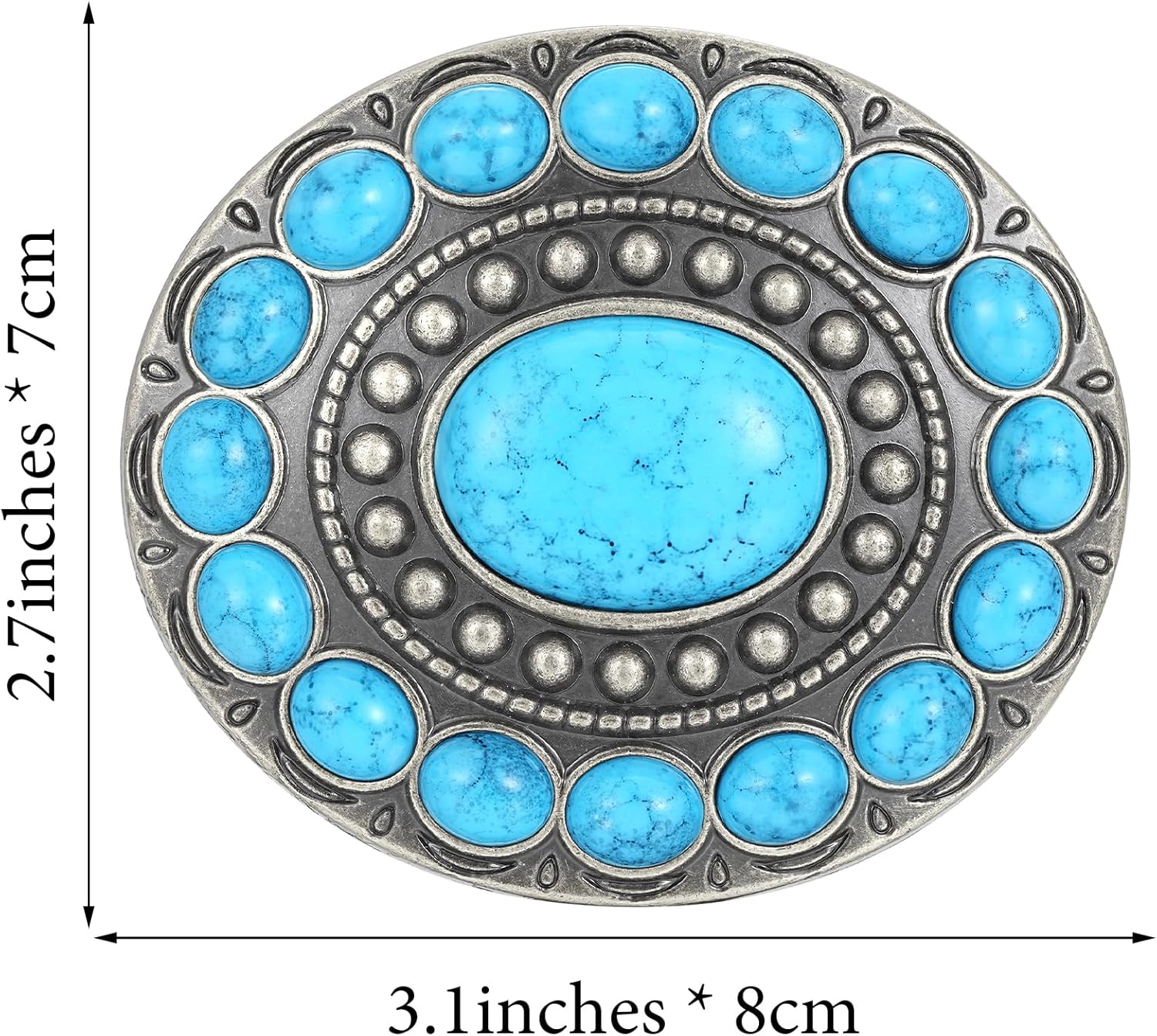 • Turquoise Belt Buckle: The design of the large turquoise design in the centre of flower belt buckle is unique and eye-catching, perfect for those who love nature and western culture